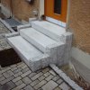 Neugestaltung des Eingangsbereichs mit Granitvollblockstufen, Mauer aus Ganitmauersteinen.